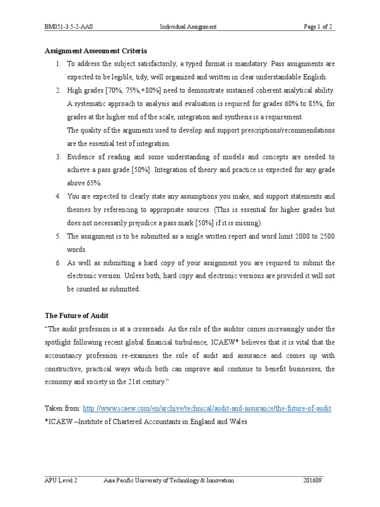 Assignment Essays essays are NOT intended to be forwarded as finalized work as it is only strictly meant to be used for research and study purposes. Accounting class audit implementation assignment Essays does not endorse or condone any type of plagiarism. All rights reserved.